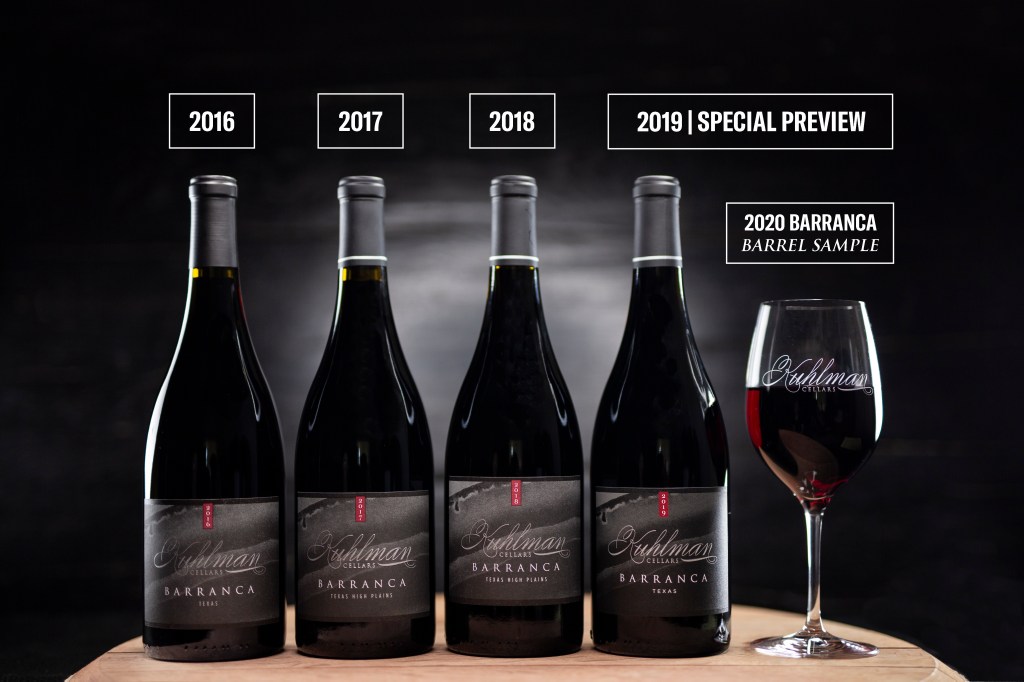 Stonewall, Texas – April 20, 2022 – Kuhlman Cellars today announces a new vertical tasting of the Barranca red wine. During the 45-minute guided experience, guests will taste the 2016, 2017, 2018 and the not-yet-released 2019 Barranca. In addition, guests will get to taste a special barrel sample of the 2020 Barranca.